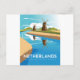 Traditional Netherlands windmills on the river bank European tourism and travel poster Flat illustration
