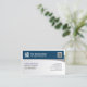 This network engineer technical IT skills business card has a simple design consisting of a blue banner on the top, casting a subtle shadow towards the right. Your Business logo, name and tagline appears within this banner. If you have a QR code, you can place it on the right side of the banner. Your name, title and contact numbers appears below this banner on the left while your business contact details appears on the right. Perfect for computer, engineering, technical, technology, internet, online, web, it, information technology, computer repair, computer services, simple, minimal, professional, elegant themes.