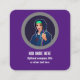 A female security analyst pulling the plug on hackers, this woman wears a hoodie and is an inspirational image for girls and women in tech. Her neon visor gives a futuristic touch to cybersecurity as she fights cyber crime and online fraud. You have multiple customization options on this purple and gray design, plus a space for your own website or profile's QR code on the back.