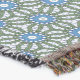 A quality printed throw has its advantages. This is a much finer weave throw than its loopier cousins, and though lighter, it is worth the investment for custom room accessorizing. The back is much prettier than the typical brown, and the fringe on the long sides very vivid, the selvage nicely done. Before photographing, I washed the throw in cold water, delicate, with a thicker woven throw the same size. On tumble dry low, this throw was dry in half the time as the other. This is a very practical quality if you use throws for furniture covers or to wrap up in frequently. The sleekness of the fabric makes it a great layer for accenting or protecting without the feeling of sitting on too much stuff. Perfect for napping or when you feel a light chill coming on. The color printing is beautiful and on this fabric, matched the design and color of my Photoshop image. This is an advantage for blending room fabrics and colors. The fringe on the short sides prints the colors from the design image and therefore varies from the side fringe. I streaked a white fractal line through the plaid pattern to give the illusion of weaving. This printed as crisp as an illusory thread, and put some white in the short side fringe, showing another advantage of print vs loomed- for artistic purposes, line lines, detail, and color integrity can be planned and preserved. My loomed throws have color limitations and more of a needlepoint texture. Print throws reproduce an exact image. The throw felt a little stiff straight out of the package, but this went away in the first delicate wash. Of course I searched the wash water for ink or bleeding and there was none.