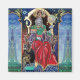 Colorful, vibrant , contemporary painting in gold ,blue,red,green,brown colors . A mysterious hypnotic sorcerer with elegant gorgeous red velvet costumes holding a magic sphere sitting on a gothic throne with gargoyles and an owl. Ambient is surreal,fantastic ,alchemic where you see a jester is drinking from a cup, a templar monk flying on a frog,transparent bubbles,fantasy landscapes with hell fire,cosmic blue sky with stars , mountains of heaven,trees .Egg Tempera on wooden panel with golden foil. 1989 , Miniature Made with pictorical techniques of 1300 by Alessandro Lumini (c) It is also a beautiful fantasy design for Christmas,Holiday,Birthday,New Year's Eve day, Mardi Gras and Carnival greetings.