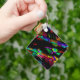 The key chain is made of metal and really sturdy. The flower design is really cheerful. The logo and colors are clear and crisp!