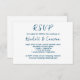 White wedding menu reply cards with dark blue text. Neutral design with option to include menu / entrée selections and have guests reply online. Include a wedding website to make things easy. Reverse is also white.