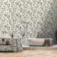 This botanical wallpaper features flowing floral and leaf motifs in a smoky green‑gray set against a soft warm beige background. The stylized blossoms and curved stems create a gentle, organic rhythm that feels calm and inviting. The muted palette adds a touch of modern boho elegance, making this design a beautiful fit for cozy bedrooms, serene living spaces, and nature‑inspired interiors. Its understated colors and graceful pattern bring a soft, cottagecore‑friendly warmth and movement to any room.