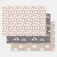 A set of three coordinating gift wrap sheets in neutral tans and greys.