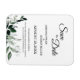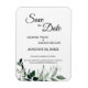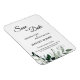 This Neutral Botanical wedding save the date magnet provides a simple, rustic plant palate to coordinate with any traditional wedding theme. The minimal greenery, with dark and grey shades of elegant green eucalyptus leaves and plant foliage, alongside the classy casual calligraphy, open up a minimalist nature vibe to a classic, formal marriage celebration.