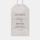 The quality and weight of the paper used was excellent. I love the feminine floral design. I gave received so many compliments on the unique cut of the tag. I also use these tags as a business card. This is my 3rd time ordering this design. I love it! I was very pleased with the printing. I was excited that I was able to print separate messages on both sides of the tag. Very clean look.