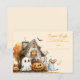 Celebrate the upcoming arrival with this cozy neutral Halloween baby shower invitation! Featuring a charming haunted cottage, friendly ghost characters, and autumn foliage in warm beige and orange tones, it’s perfect for a subtle and sweet fall celebration.