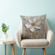 Neutral Gray White Gold Farmhouse Floral Throw Pillow