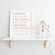 This neutral “I Am Kind” affirmation poster encourages self-love, confidence, and emotional resilience in children. Featuring a list of positive statements, it supports daily emotional reinforcement in a calm and gentle way. Perfect for kids’ bedrooms, nurseries, classrooms, or therapy spaces. The minimalist design and soft tones align with current trends in child-focused interior décor. A meaningful wall art print that helps create a safe and supportive environment for growing minds.