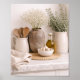 This neutral farmhouse wall art features a timeless kitchen still life with rustic ceramic pitchers, wooden spoons, fresh garlic, olive oil, and soft eucalyptus greenery. Designed in warm beige and cream tones, this artwork brings a calm, lived-in charm that complements farmhouse, cottage core, and modern rustic décor.