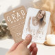 Modern and minimal typography graduation announcements with photo, fun graduation party invitation on the back in earth tone neutral tan, Custom it with your own photo and party information.