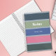 A cute, neutral notebook with text that reads "NOTES" and a custom monogrammed full name.