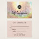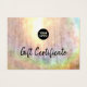 This neutral, beige design has a touch of holographic colors and a grunge texture. There is a business logo, and a gift certificate layout.