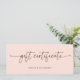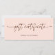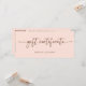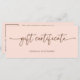 This modern and neutral, pink peach and brown gift certificate features elegant handwritten script typography. You can add your logo and a QR code to the back for a simple, stylish, and professional look.