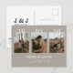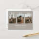 Announce your special day with this modern minimalist save the date postcard, thoughtfully designed as an elegant photo collage wedding announcement. Featuring three personal couple engagement photos framed in a soft beige, the card is highlighted by bold date typography and soft script calligraphy that elegantly states “Save the Date.” The clean reverse side displays your initials alongside a refined botanical accent save the date design, all set in a contemporary wedding announcement idea with a clean neutral color palette style. Rustic inspired wedding stationery details and the easy to mail postcard format make this three photo wedding keepsake card both practical and memorable, perfectly capturing your joyful celebration with sophistication and ease.