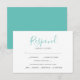 Guests can easily fill out their reply RSVP cards with attendance details and select from simple entrée options, making planning seamless for your event. The reverse side showcases a soft turquoise blue tone, inspired by sea glass, adding a fresh and cohesive touch to your stationery suite.