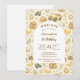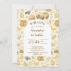 A soft and charming safari-themed design featuring gentle watercolor animals surrounded by delicate wildflowers and botanical greenery. Sweet lions, giraffes, elephants, and zebras create a whimsical storybook scene in warm neutral tones of beige, cream, and soft sage. The elegant arch layout and botanical details give this design a timeless and refined look, perfect for celebrating a little one’s special first birthday.