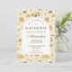A sweet storybook-style safari design featuring gentle watercolor baby animals including lions, giraffes, and elephants surrounded by soft jungle greenery and a delicate botanical background. The warm neutral palette of cream, honey gold, and soft olive creates a timeless nature-inspired aesthetic, while the elegant arched layout provides a beautiful space for event details.