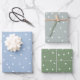 Be prepared to give gifts for any occasion with this set of polka-dotted wrapping paper in three color combinations: blue with white and purple, grey with white and green, and green with white and more green. The neutral colors and simple design mean that your gift will not appear out of place wherever or whenever you give it.
