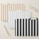 Set of three file folders done in striped patterns. First folder is done in a white and tan, next is done in a light gray and white, and the last is done in a black and white striped pattern.
