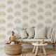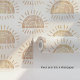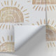 Add a touch of warmth and charm to your space with this Neutral Sun & Rainbow Blockprint Peel & Stick wallpaper. Featuring a rustic design of sun and rainbow motifs in soft, earthy tones of beige, tan, and cream, this wallpaper brings a cozy and inviting feel to any room. The hand-printed blockprint style adds a textured, artisanal quality that enhances the overall aesthetic. This removable wallpaper is both stylish and practical, allowing for easy installation and removal without damaging your walls. Perfect for a nursery, living room, or any space that needs a subtle yet uplifting decor element.