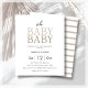 Introducing our customizable modern twin baby shower invitation, a perfect choice for celebrating the arrival of twins. The affordable invitation features stylish neutral beige lettering that reads "Oh Baby Baby" on a clean white background, creating a chic and contemporary look. On the reverse side, you'll find a delightful stripe pattern in soft pastel beige and white, adding a touch of charm to the design.