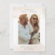 A simple and elegant save the date design featuring a vertical photo with swashes of pastel neutral earth tone watercolor at the top and bottom. Personalize with your names, wedding date, and location in classic lettering, and add more information to the back.
