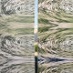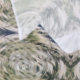 This Abstract pattern, designed with Special, imaging effects, simulates, water swirling-in colors of green, silver, black, bronze, and white.