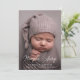 Photo birth announcement personalized with a big photo on the cover and three more photos on the back. Your baby's name in a white signature script along with their last name and birth stats. Beautiful new baby announcement that works for both boys and girls.