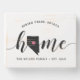 Show some home state pride with this cute wood box sign featuring "home" in black calligraphy script lettering with a silhouette map of the state of Nevada standing in for the letter "O." A pink heart illustration inside the state map completes the design; you can change the position of the heart to your home city by opening the design tool and dragging the heart shape to your favorite spot. Personalize with your home city, family name and year established to create a perfect finishing touch for your entryway, or a memorable housewarming gift.