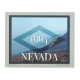 A digital landscape painting of Walker Lake in Nevada. There is a blue diamond shape in the center of the artwork. In the center of this shape is the year of the statehood,1864, in white. There is a zebra-tailed lizard climbing on the diamond shape. In large white letters, NEVADA, sits at the bottom of the artwork. There is a simple border to frame the art. Image Copyright ©2023 Kimberly J Tilley.