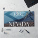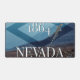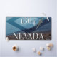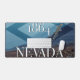 A digital landscape painting of Walker Lake in Nevada. There is a blue diamond shape in the center of the artwork. In the center of this shape is the year of the statehood,1864, in white. There is a zebra-tailed lizard climbing on the diamond shape. In large white letters, NEVADA, sits at the bottom of the artwork. There is a simple border to frame the art. Image Copyright ©2023 Kimberly J Tilley.