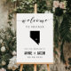 You chose a special place for your wedding because it means something to you. Now it's time to honor that place by greeting guests with this custom sign featuring an elegant silhouette map. The wedding welcome sign is for placing at the entrance to your venue, hotel, or reception. To move the tiny heart to the exact place of your wedding, click personalize and then "customize further."