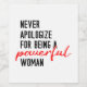 Stop apologizing and start celebrating. This "Never Apologize For Being A Powerful Woman" wine label is designed for the woman who knows her worth. Featuring a chic minimalist aesthetic with a touch of fiery red, it’s the perfect accessory for International Women’s Day, office parties, or a well-deserved self-care gift. Transform a standard bottle of wine into an empowering keepsake.