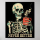 Never Better Skeleton Drinking Coffee Halloween Pa Poster