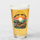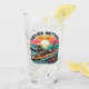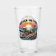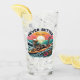 A bold and playful drinking glass featuring a skeleton riding a surfboard on a crashing ocean wave, set against a vibrant sunset background with the phrase “Never Better.” This ironic and carefree artwork blends surf culture with dark humor—perfect for beach lovers, alternative style fans, and those who embrace life with a rebellious, lighthearted edge.