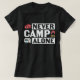 A cool typography design for camping lovers, that reads: Never camp alone.