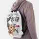Dog lovers of every age will get a kick out of this cute dog design drawstring bag featuring four adorable dogs in bow ties and hair bows with black text that reads Never Enough Dogs!