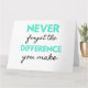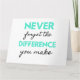 Never Forget The Difference You Make design. This is a short motivational quote which is great as an employee appreciation gift. Also suitable as a coworker office gift.
