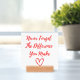 I love it. It’s a nice size, easy to read, and the QR code works effectively. May I also add that it was created and shipped quickly?! I’m so grateful. Thank you.