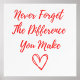 The phrase "Never Forget the Difference You Make" is a powerful reminder of the impact we can have on the world around us. It encourages us to recognize the positive influence our actions, words, and presence can have on others. Whether it's a small gesture of kindness or a significant contribution to a cause, every individual has the potential to make a difference.