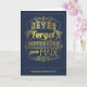 A striking thank you or personalized appreciation card. This beautiful typography design would be perfect as a retirement gift for a pastor, physician or teacher. The quote 'Never forget the difference you've made' is featured in faux gold typography on a dark blue background. Add your own message or recipients name to make a truly unique and personal greetings card.