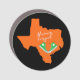 Uvalde tribute and pro gun reform car magnet design features orange Texas state silhouette with green high top Chucks and "never forget" text.