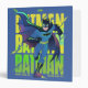 Check out this cartoon graphic of Batman running, featuring his name in electric colors behind him and the words "Never Give Up" along the bottom.