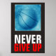 Never Give Up Blue Basketball Motivational Poster