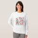 I love this shirt. I had written to the artist asking her if this picture was available on a shirt, and she wrote me back telling me where I could find the shirt. These shirts can be custom made to have a different saying. I loved this saying and went with it. The artist wrote me back later to tell me that she had seen my order go through. How's that for service? Pretty special. It's just as displayed. Perfect!