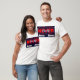 The shirt is good quality and fits just fine, but the colors of the printing are not as bright as in the sample photo. Not the best. The colors are a lot brighter in the sample photo; when I received the shirt they appeared faded. The red looks a little more pink and the blue is a lot lighter. N.B. I did not wash the shirt yet.