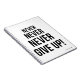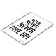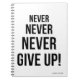 .: If you know someone who needs a little reminder to press on or to believe in themselves, this notebook with the Winston Churchill quote "never never never give up" may be just the right thing. The font is bold and grows with each word! Available on coordinating products, too!
