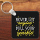 The key chain is made of metal and really sturdy. The flower design is really cheerful. The logo and colors are clear and crisp!